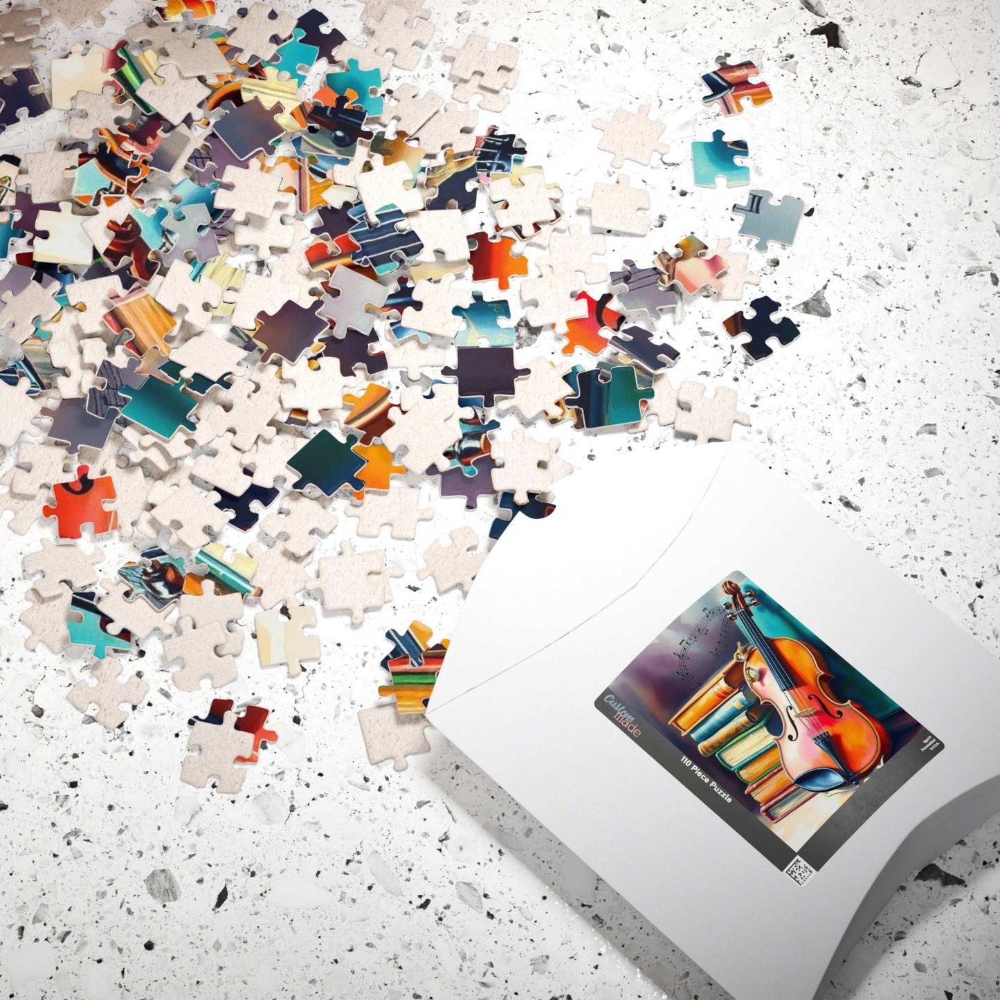 This puzzle features a design of a violin leaning against a stack of old storybooks, with music notes forming a gentle swirl above. Perfect for music lovers and book enthusiasts, this puzzle gives off a calming and artistic vibe. Ideal for those who enjoy spending quiet evenings working on a challenging yet rewarding activity. Great for gifting on birthdays, holidays, or as a thoughtful present for puzzle enthusiasts.