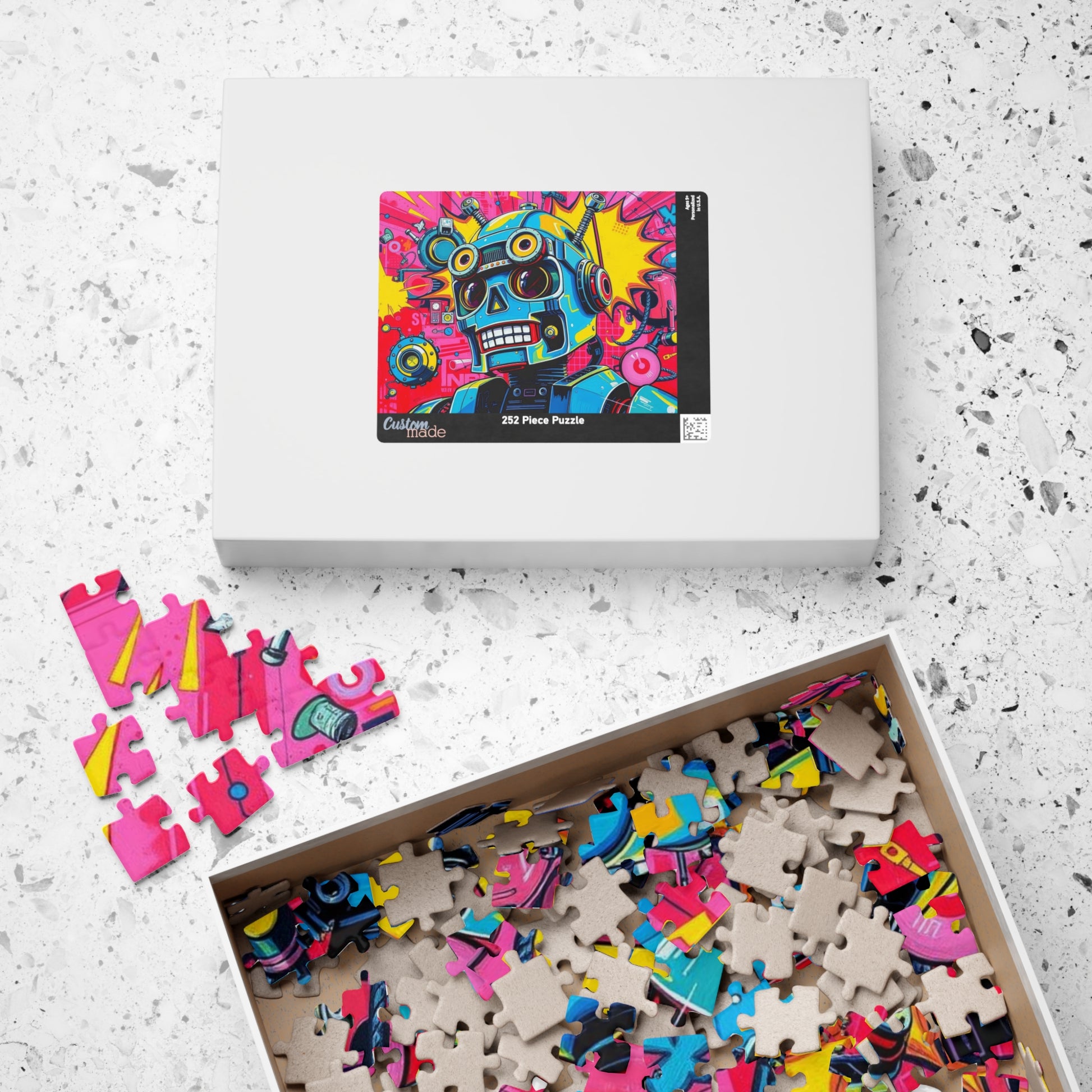 Whimsical Robot Puzzle, Colorful Pop Art Puzzle for Adults, Fun Gift for Family Game Night, Creative Birthday Holiday Gift Idea